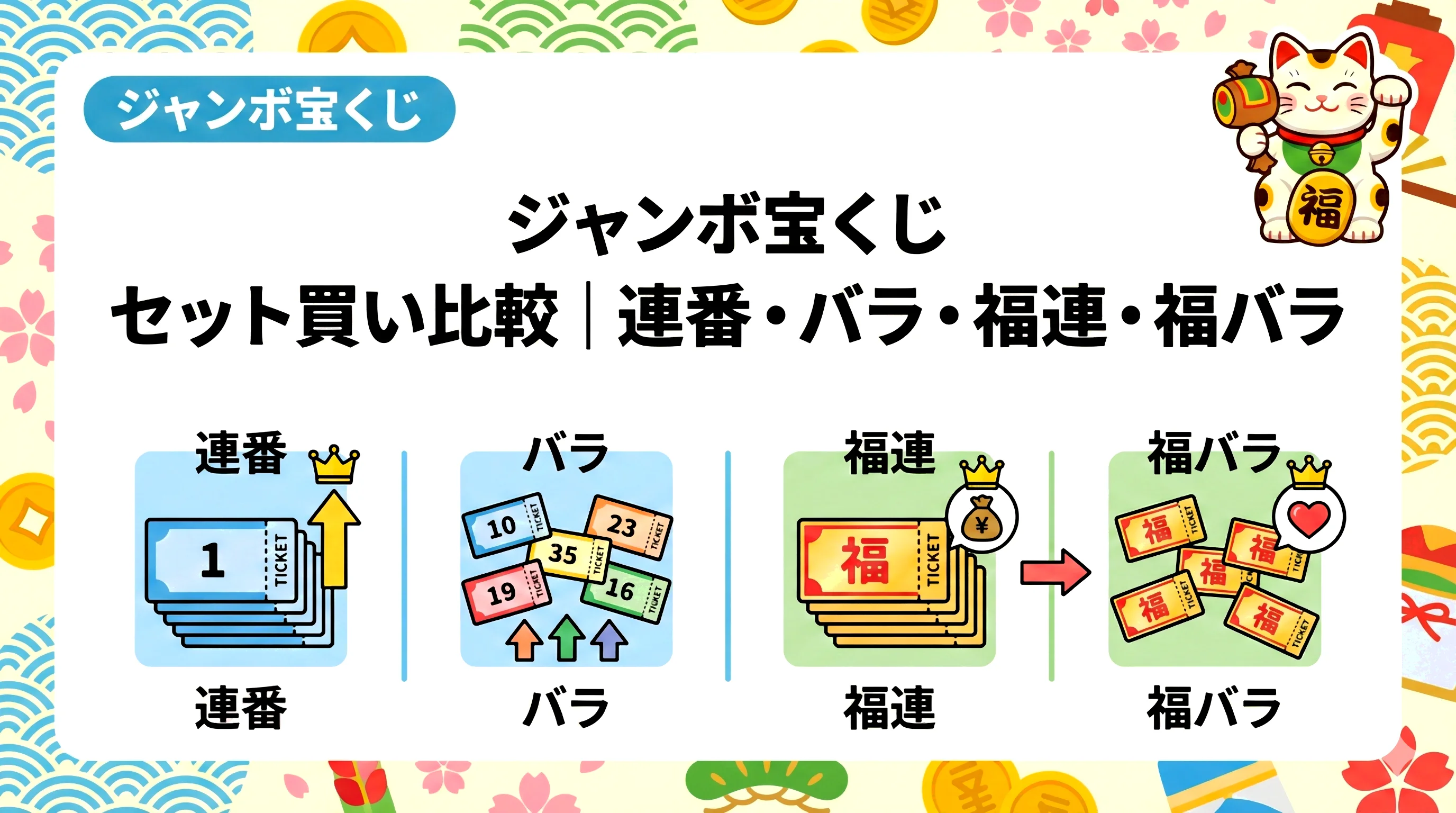 ジャンボ宝くじセット買いの種類と違い|連番・バラ・福連・福バラのメリットを比較