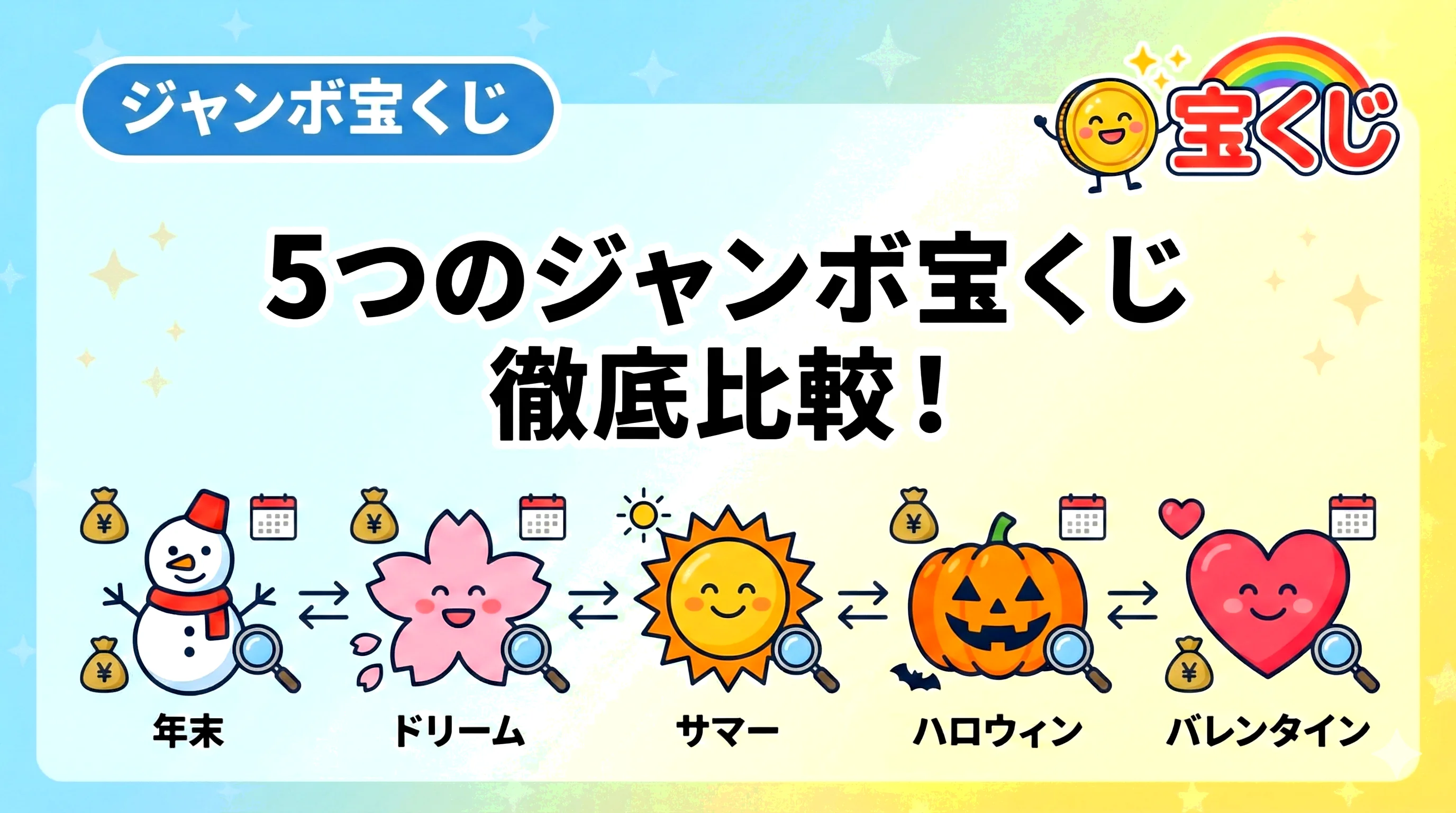 ジャンボ宝くじ5種類の違いを比較!発売時期・当選金額・特徴をわかりやすく解説
