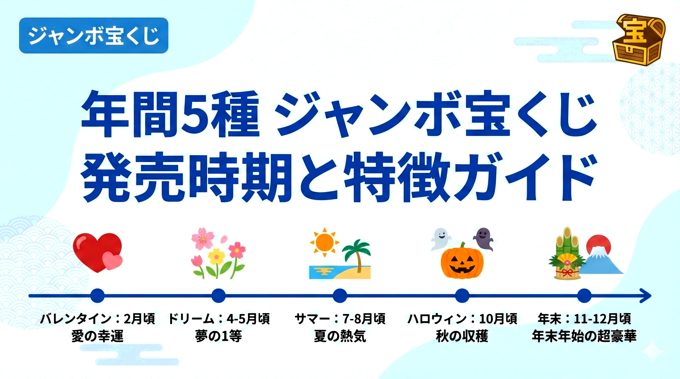 ジャンボ宝くじ全5種類の発売時期と特徴は?年間の販売スケジュールを詳しく解説