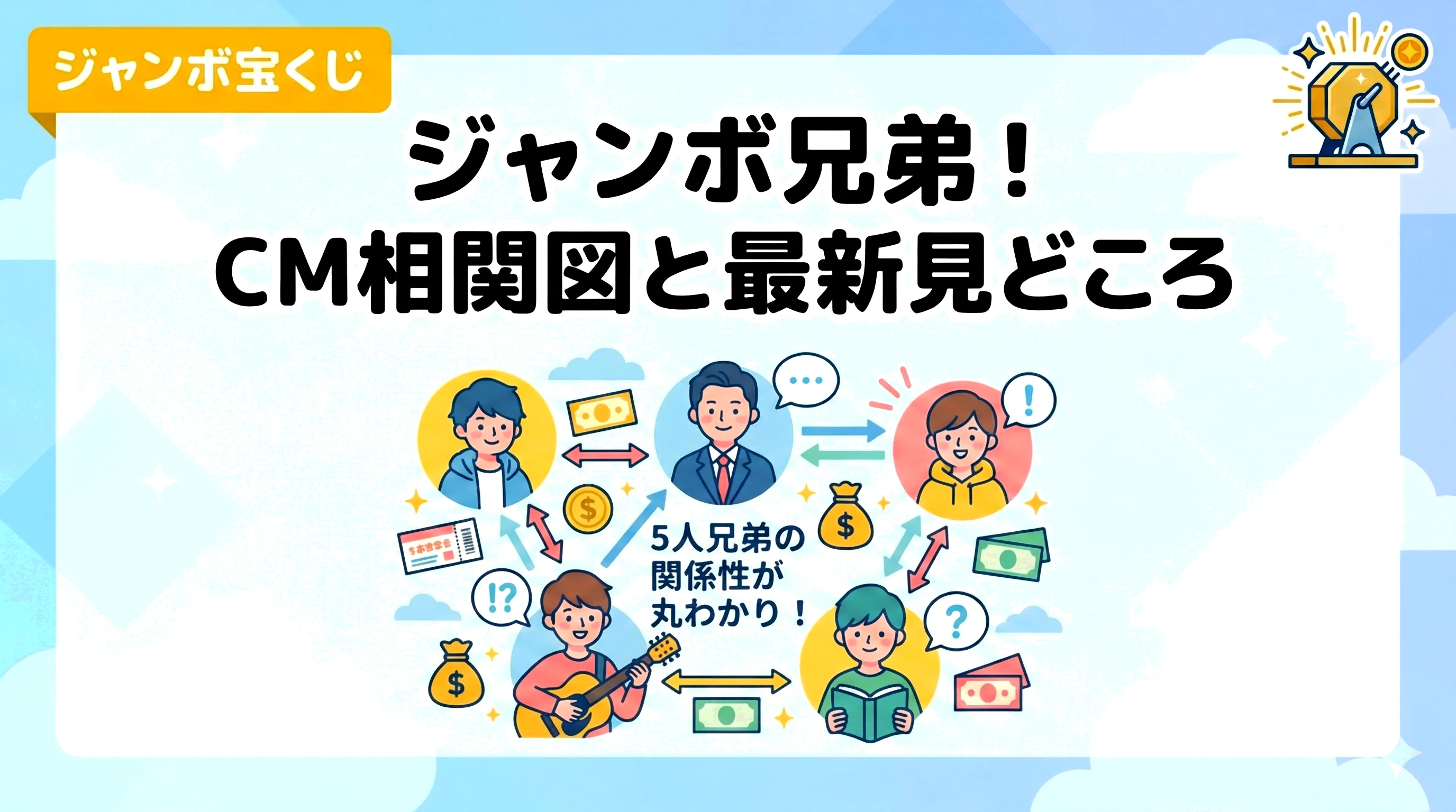 ジャンボ宝くじCMの出演者は誰?最新の5人兄弟キャストから歴代のゲストまで一覧紹介