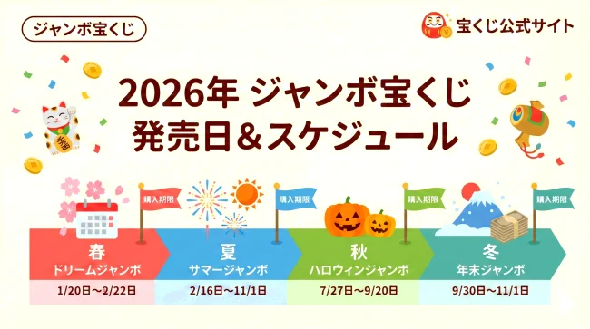 本記事では、年間を通じて発売されるジャンボ宝くじのスケジュールや、各くじの特徴、当選金額の詳細について、最新の情報をもとに網羅的に解説していきます。